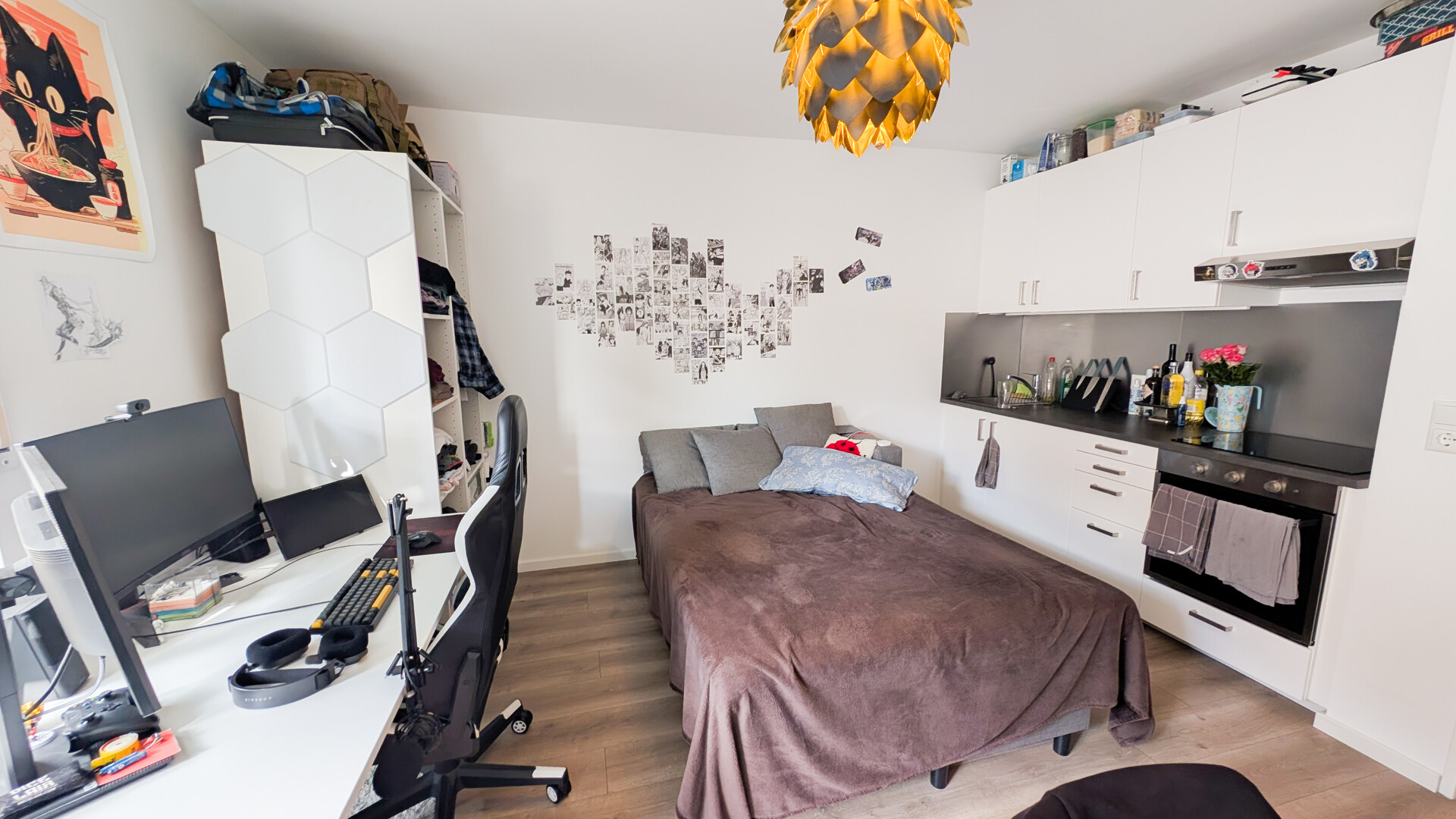 Die 1-Zimmer-Etagenwohnung verfügt über eine Wohnfläche von ca. 24 m² und überzeugt durch eine kompakte und funktionale Raumaufteilung. Der helle Wohn- und Schlafbereich bildet den zentralen Raum der Wohnung und bietet ausreichend Platz für Wohnen, Entspannen und Kochen.