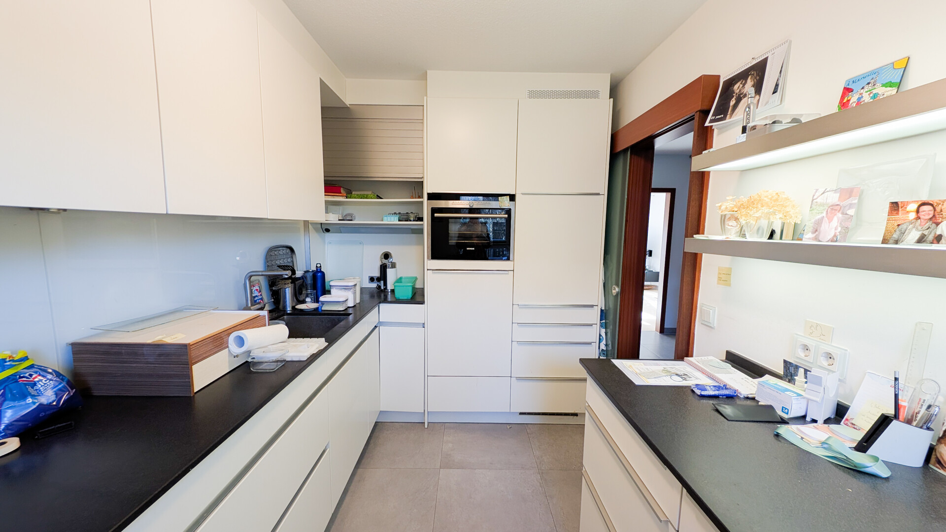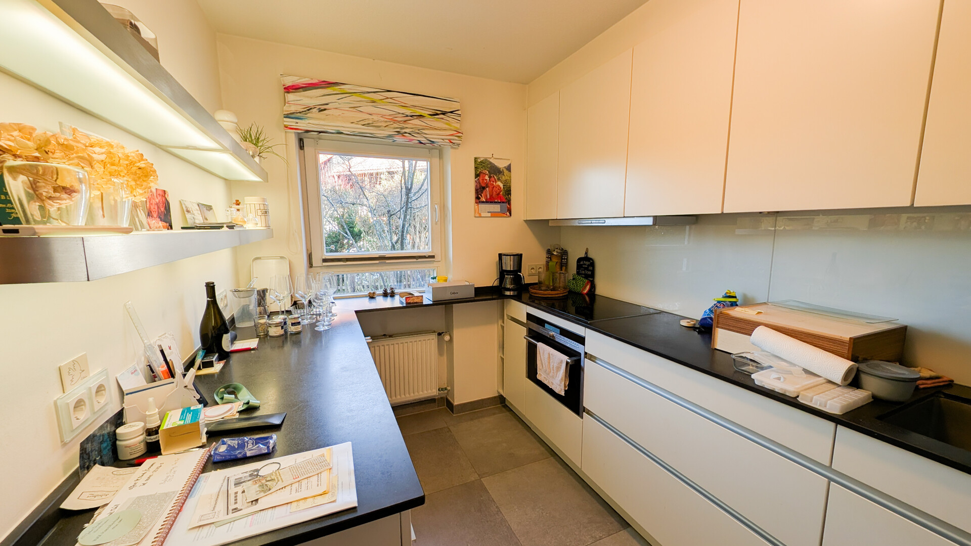 Im Erdgeschoss empfängt Sie ein freundlicher Flur mit Platz für eine Essecke, der eine wohnliche Verbindung zwischen Küche und Wohnbereich schafft. Die gepflegte Einbauküche bietet viel Stauraum und Platz zum Kochen. Das angrenzende Wohnzimmer ist hell und einladend – ein Ort zum Entspannen, Zusammensein und Wohlfühlen. Von hier aus öffnen sich große Fenster zum liebevoll gestalteten Garten und der Terrasse. Ein Gäste-WC ergänzt diese Ebene sinnvoll.